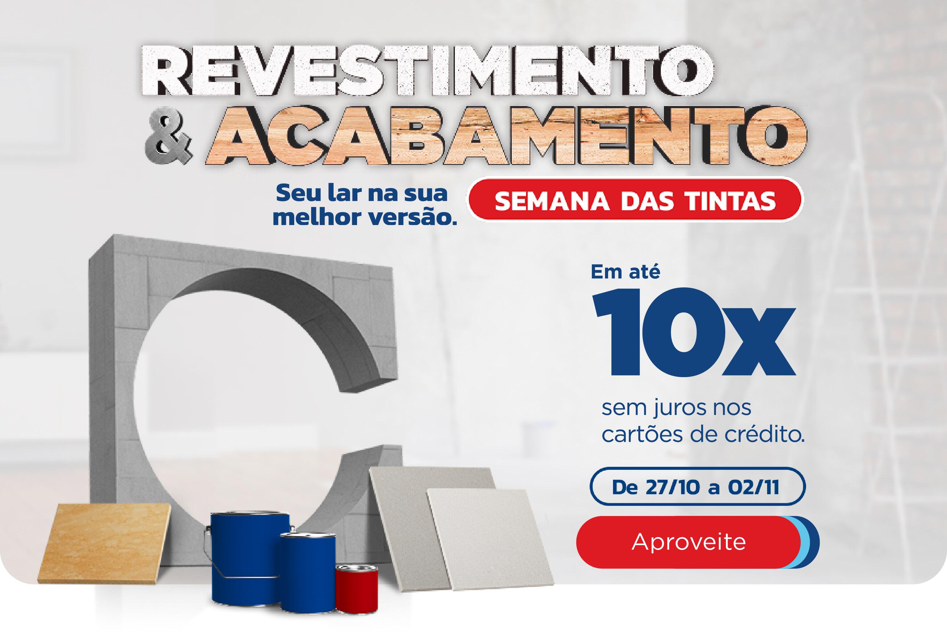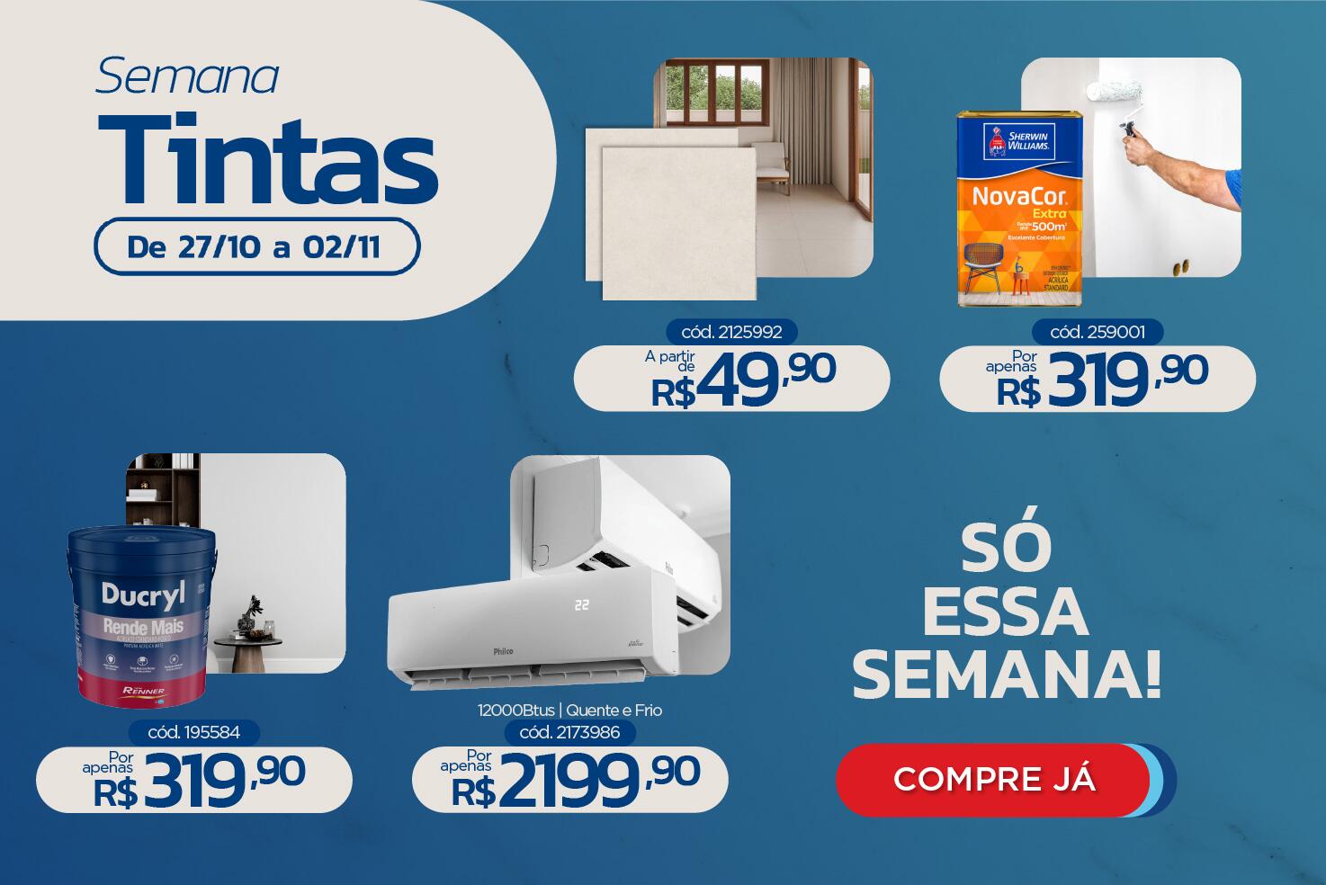 Tintas: seja para ambientes internos ou externos, há opções em diversas texturas e cores, incluindo tintas para alvenaria, metal e madeira, além de ferramentas e acessórios para pintura;