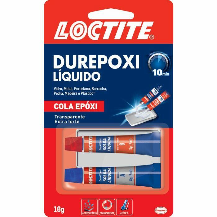Loctite Durepoxi Líquido acompanha kit completo: bandeja e pá reutilizáveis, ideal para colagens diversas, extraforte, bicomponente, transparente, embalagem 2x8g = 16g.