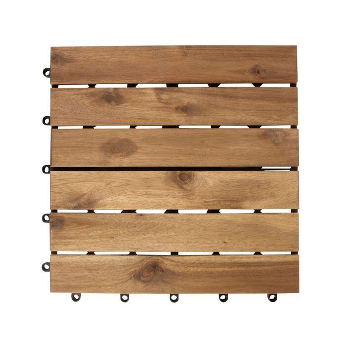 O Deck Cassia é confeccionado em madeira natural, proporcionando um toque de elegância e rusticidade ao ambiente. Suas dimensões são 30 cm de comprimento, 30 cm de largura e 2 cm de espessura, oferecendo um formato quadrado e compacto que facilita a instalação e a combinação com outros módulos.