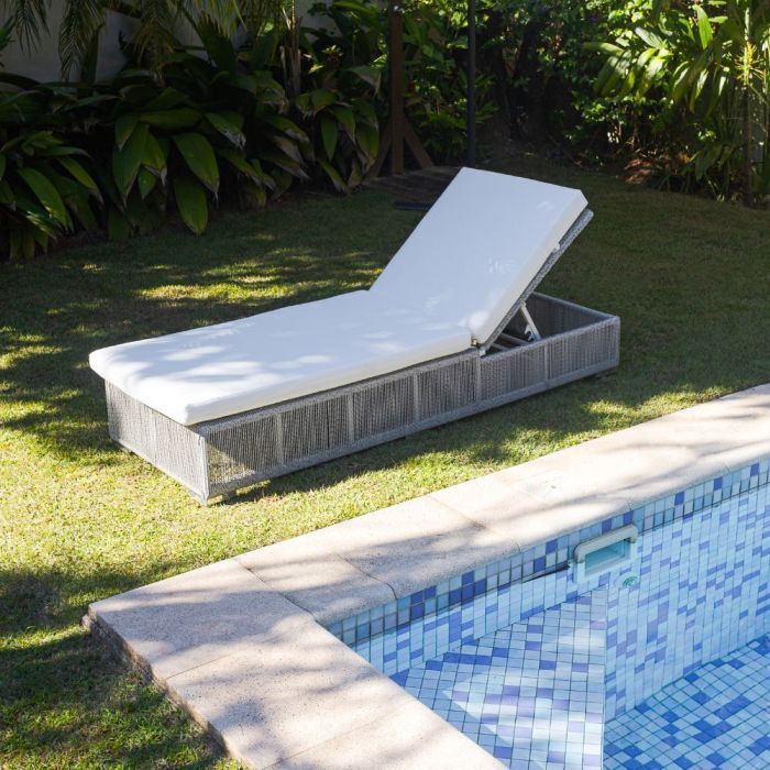 A Espreguiçadeira Viena é a escolha ideal para quem busca relaxar com estilo e conforto em áreas externas. Com design moderno e elegante, esta espreguiçadeira combina o charme do alumínio com uma trama em rattan cinza nas laterais, proporcionando um toque sofisticado ao seu espaço de lazer.