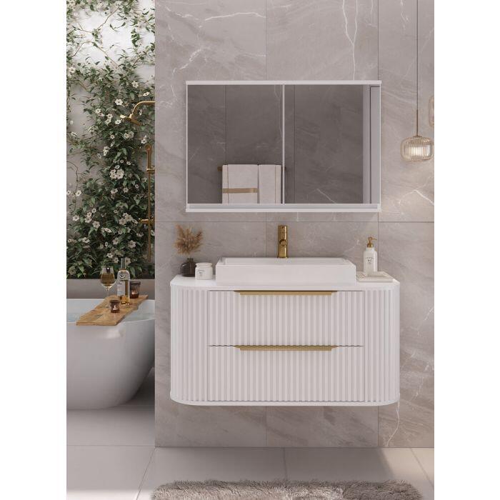 O Gabinete para Banheiro Suspenso MDF/MDP Alice Branco 1m C-Linea combina elegância e praticidade, trazendo um toque sofisticado ao seu banheiro. Seu design ripado e acabamento branco garantem um visual clean e contemporâneo.