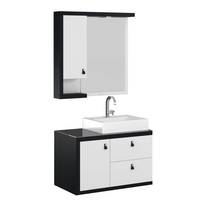 Gabinete para Banheiro Suspenso MDF/MDP com Tampo de Vidro New Rovere Branco/Preto 80cm C-Linea