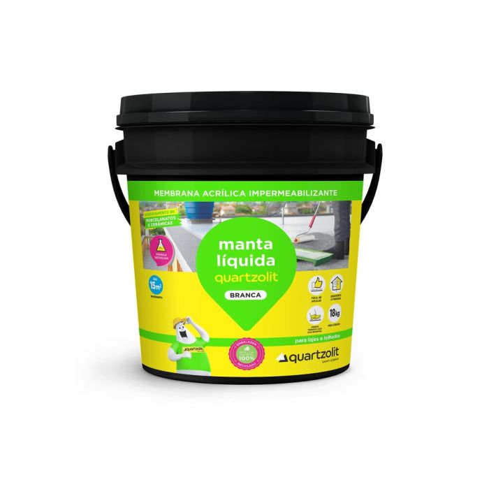 O Impermeabilizante Manta Líquida 18kg Branco Quartzolit é uma manta líquida branca flexível e elástica para lajes e coberturas sem trânsito, como lajes de concreto armado e telhas de fibrocimento e telhas cerâmicas.
