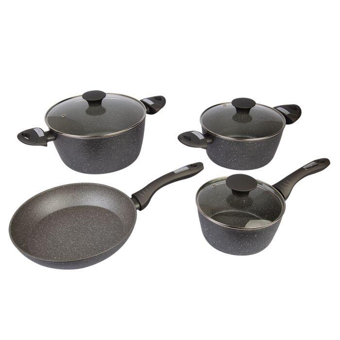 1 Caçarola de 24CM com tampa 1 Caçarola de 20CM com tampa 1 Caçarola de 16CM com tampa 1 Frigideira de 24cm |