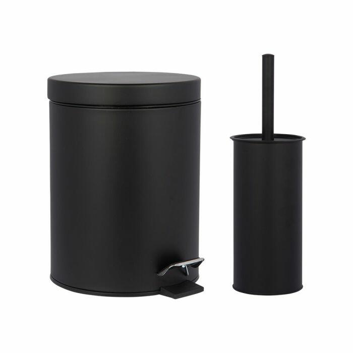 Com acabamento fosco e tonalidade preta, o kit possui um visual elegante que combina facilmente com diferentes estilos de decoração. A lixeira com pedal proporciona praticidade no descarte de resíduos, enquanto a escova sanitária com suporte mantém a higiene e o cuidado do ambiente. Juntos, formam um conjunto discreto e funcional para banheiros modernos e bem organizados.