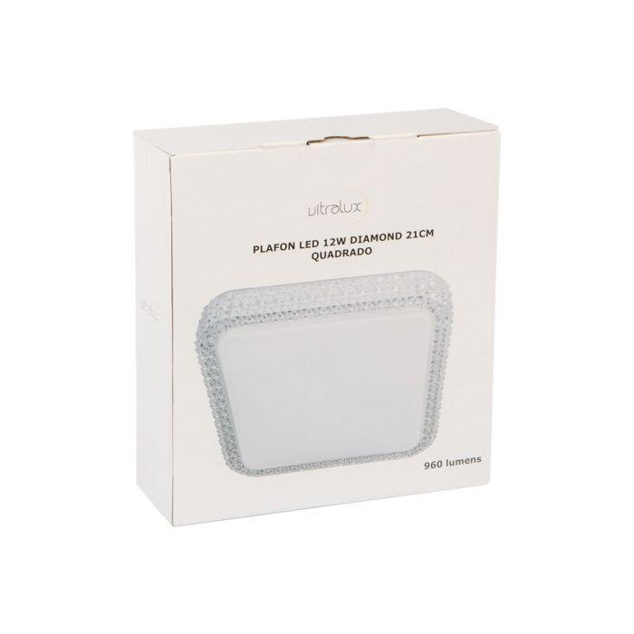 Conteúdo da Embalagem | Painel LED Sobrepor Diamond 12W 3000K 21cm Quadrado Bivolt Luz Amarela Vitralux |