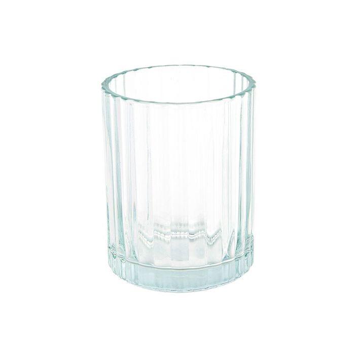 Fabricado em vidro transparente, este porta escova de dente permite visualizar facilmente as escovas armazenadas, enquanto o design texturizado adiciona um toque de sofisticação ao ambiente.