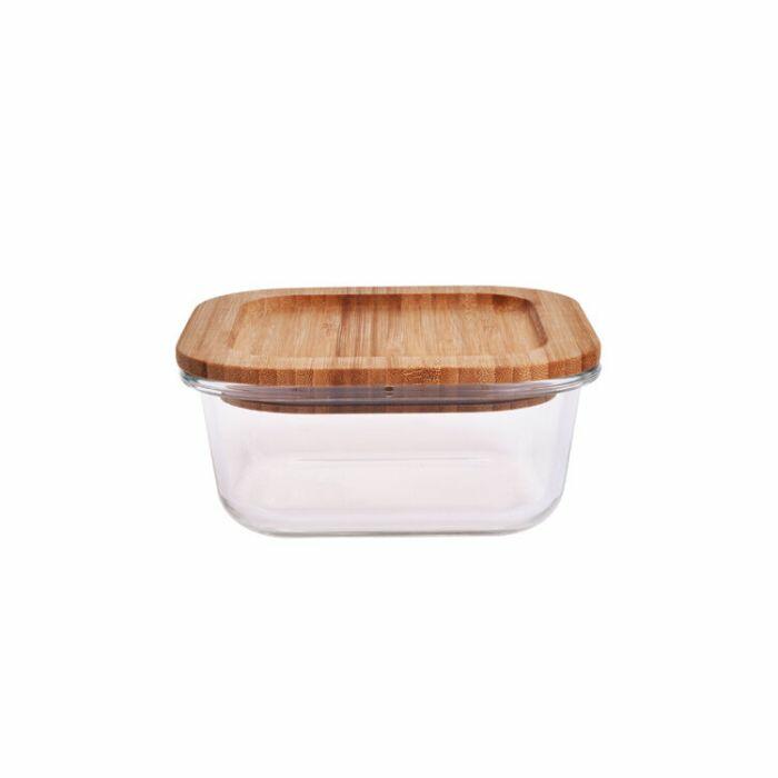 Pote de Vidro Hermético Com Tampa Bambu Quadrado 800ml Casa&ideia