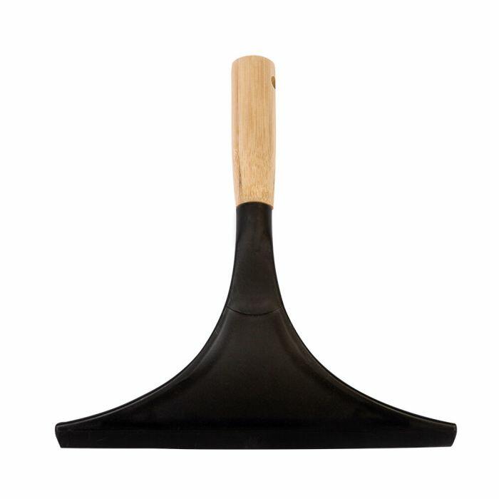 O rodo é de plástico e com cabo de bambu. O bambu é um material resistente e sustentável. Possui dimensões 23,5x24x4cm, alcançando uma área considerável para retirar líquidos e é leve, pesa56g, facilitando o manuseio.
